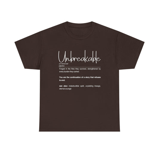 Unbreakable Unisex Heavy Cotton Tee | Motivational Shirt, Gift for Resilience, Inspirational Tee, Everyday Wear, Graphic TeeRegular price From $15.68 USDRegular priceUnit price per-