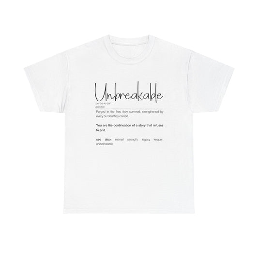Unbreakable Unisex Heavy Cotton Tee | Inspirational Shirt, Casual Wear, Gifts for Friends, Motivational Apparel, Everyday ComfortRegular price From $15.68 USDRegular priceUnit price per-