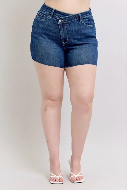 Judy Blue Plus Size High Waist Criss-Cross Waistband Denim Shorts