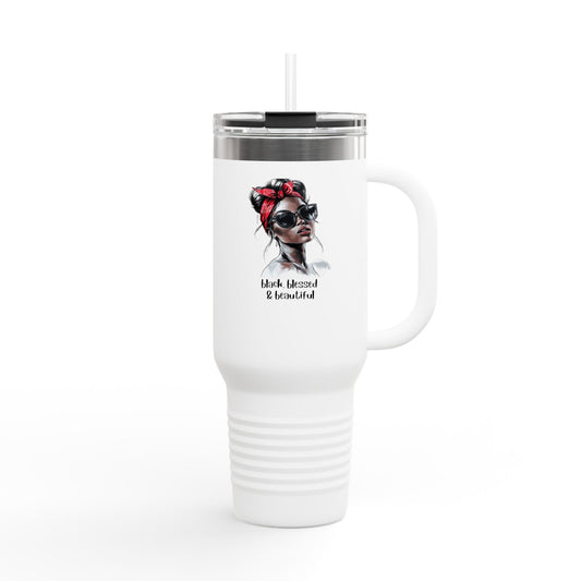 40oz Insulated Travel Mug - Black, Blessed & Beautiful Design
