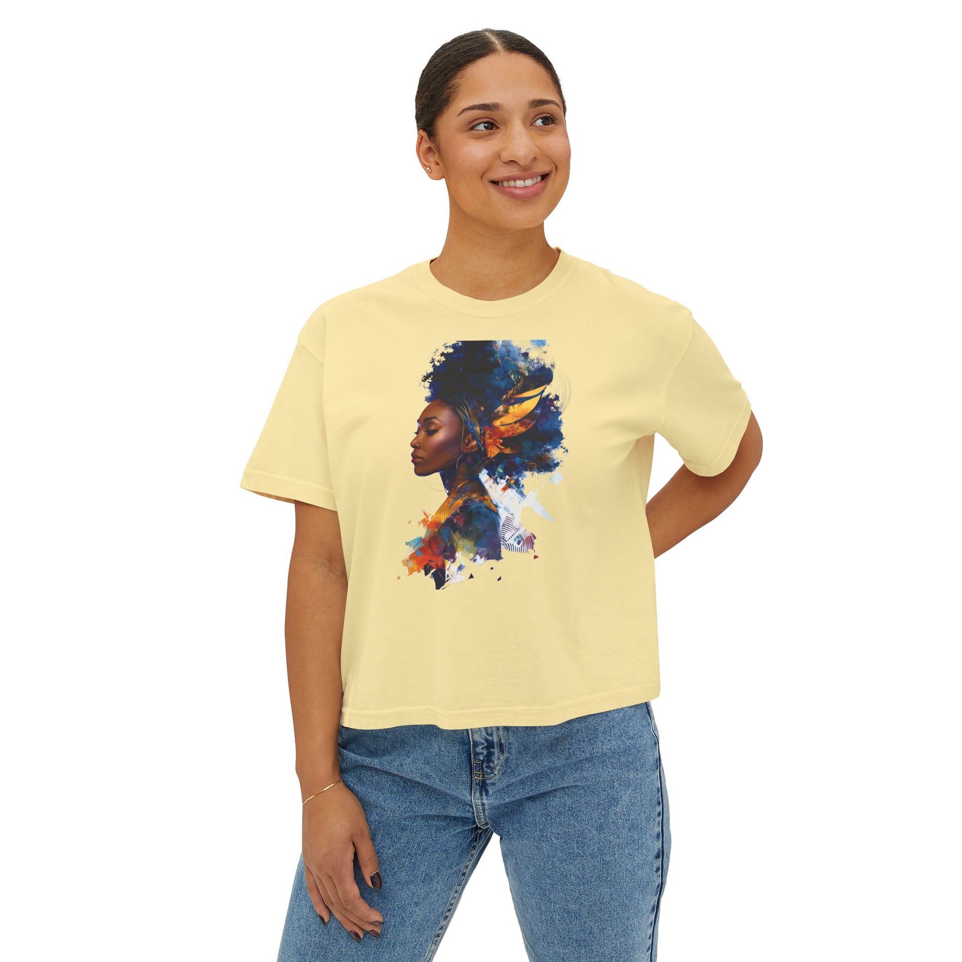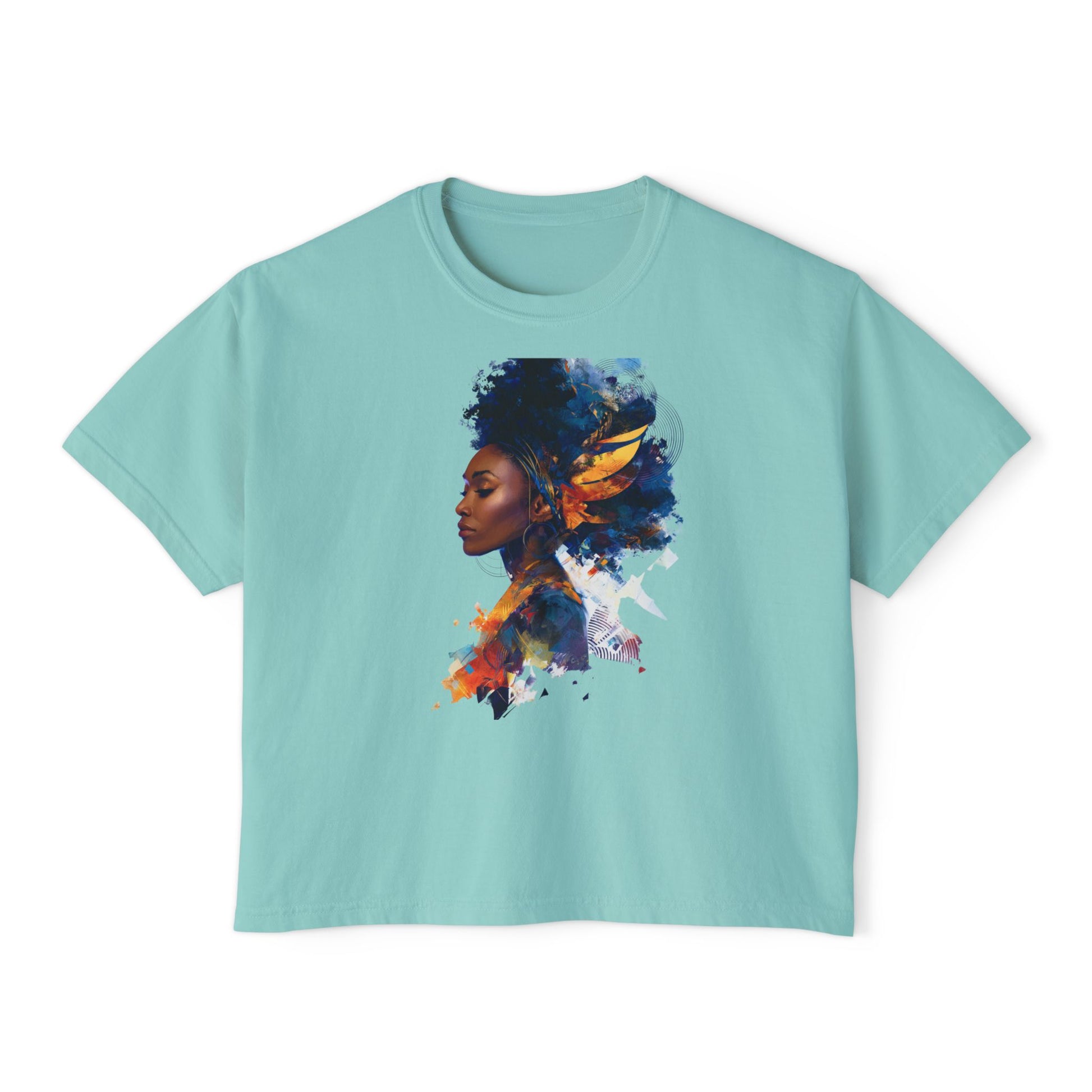 Empowering Women's Boxy Tee with Artistic Afro Design