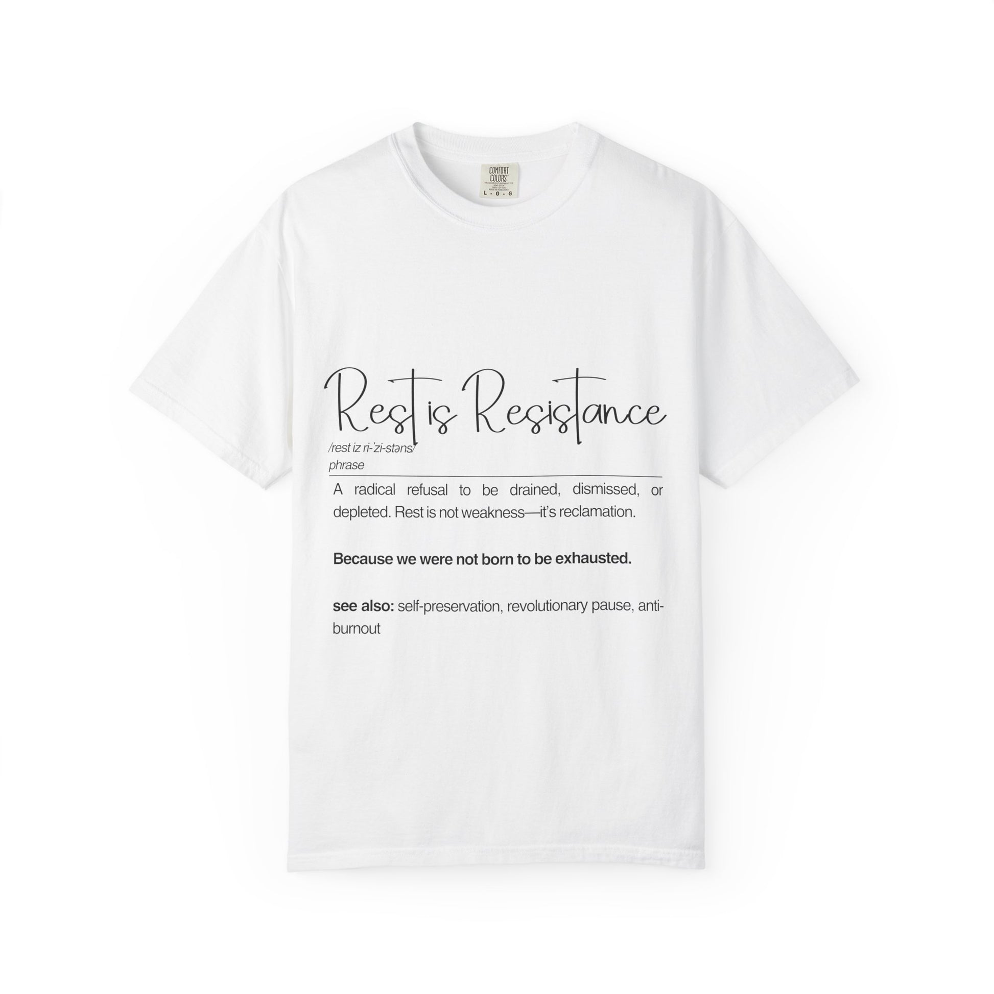 Rest is Resistance - A radical refusal to be drained, dismissed, or depleted Unisex T-Shirt, Relaxation Tee, Self-Care Shirt.