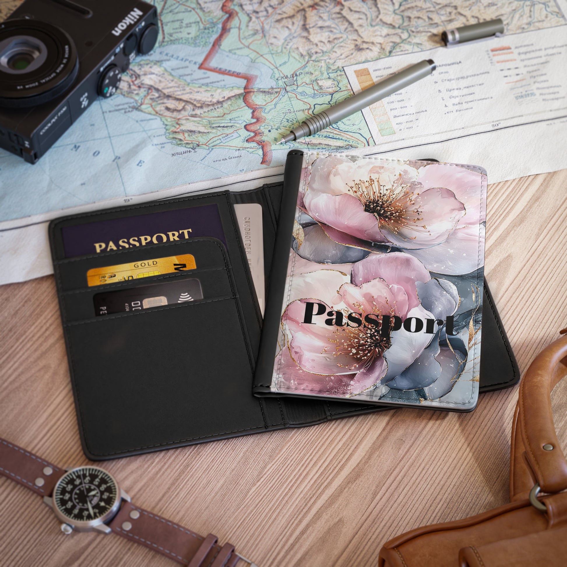 Floral Passport Cover - Travel in Style with Elegant Flower Design