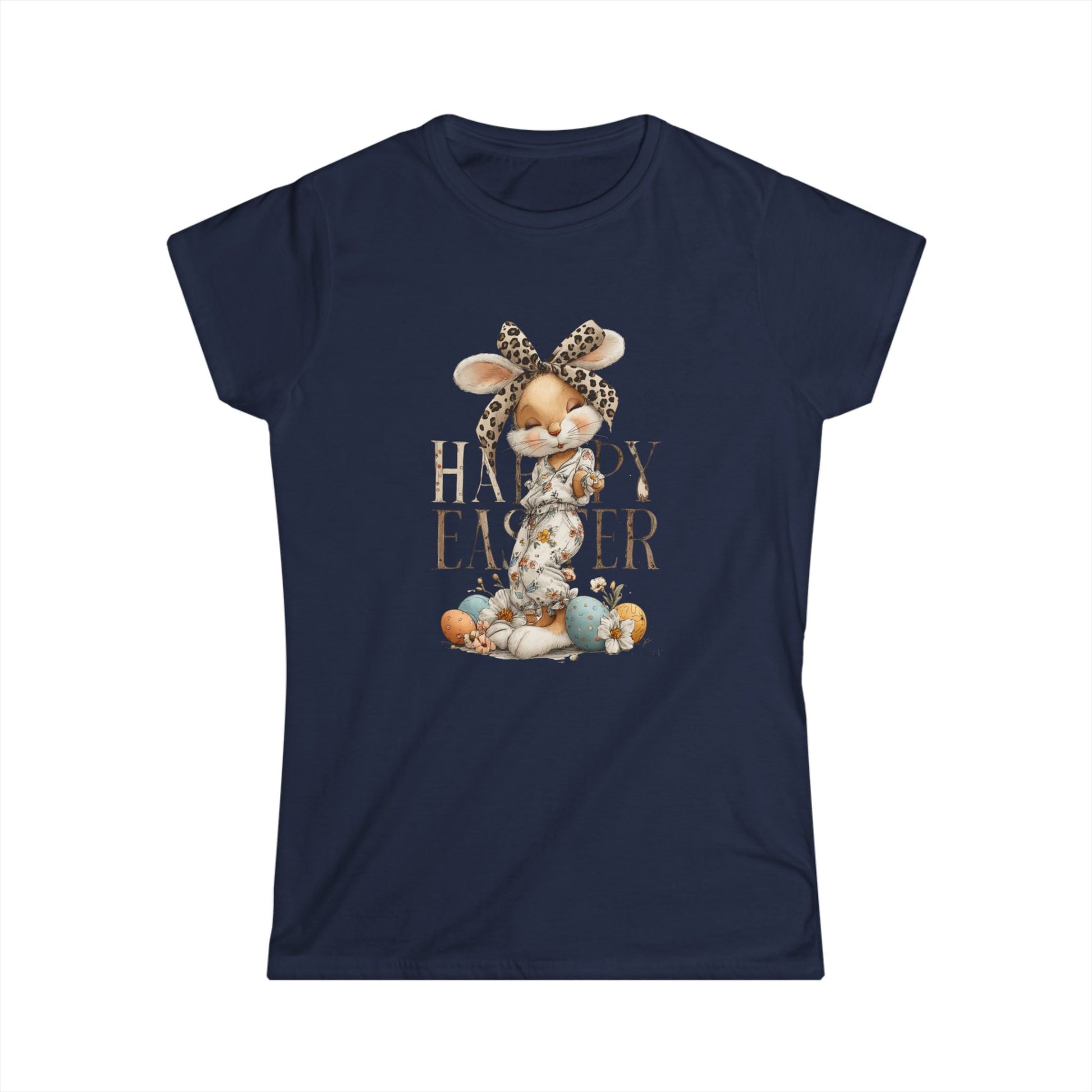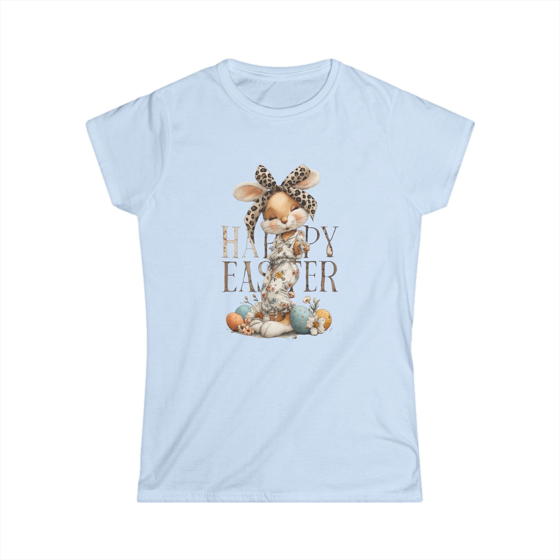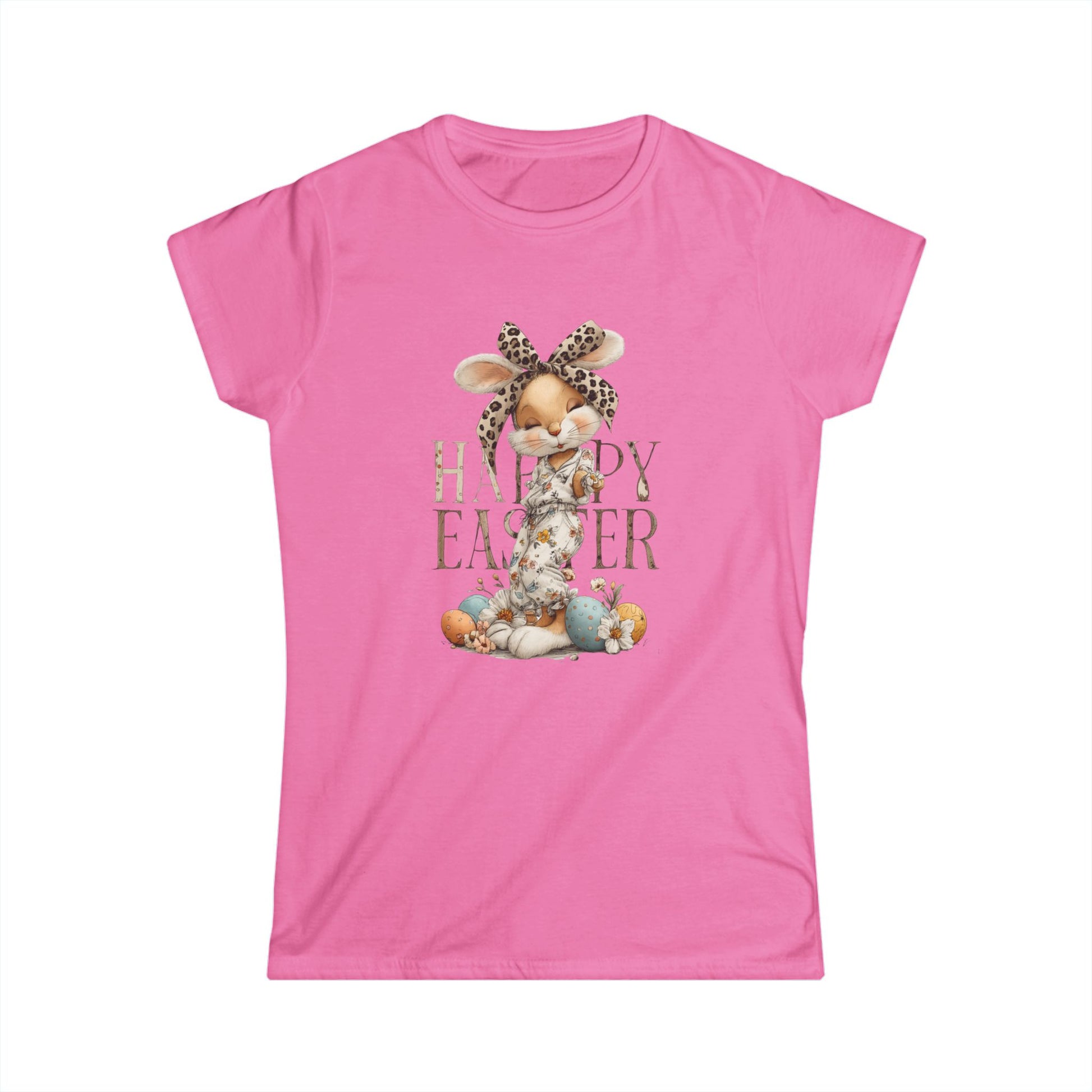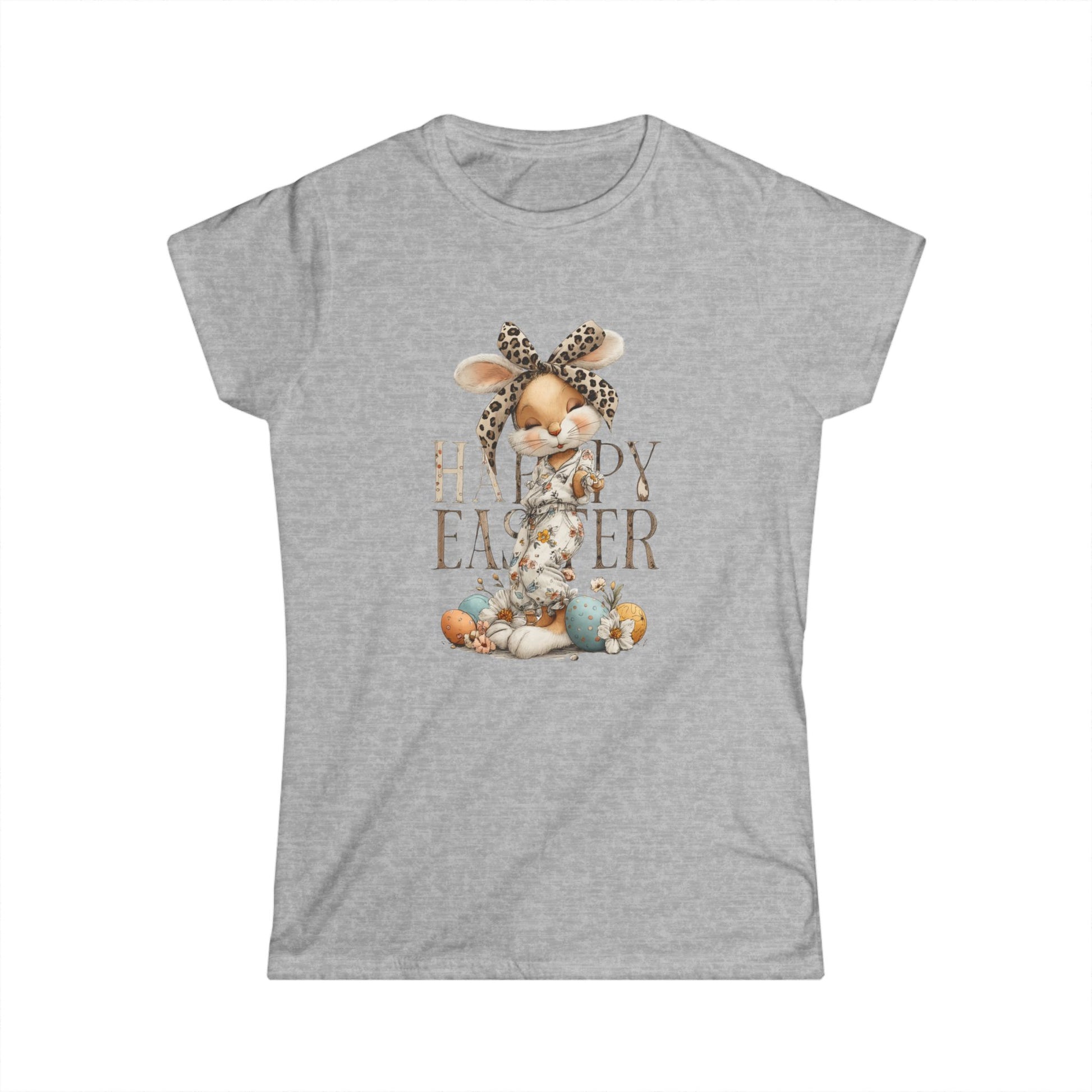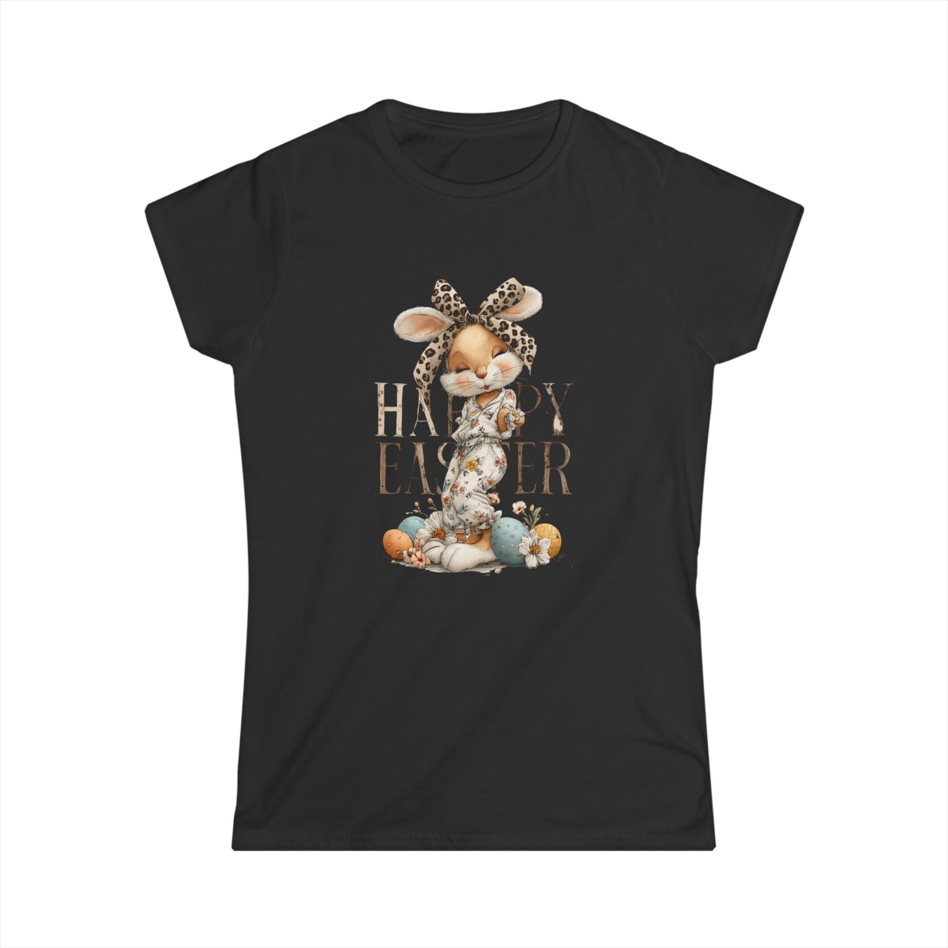 Happy Easter Women's Softstyle Tee - Cute Bunny Graphic Tee for Spring Celebrations