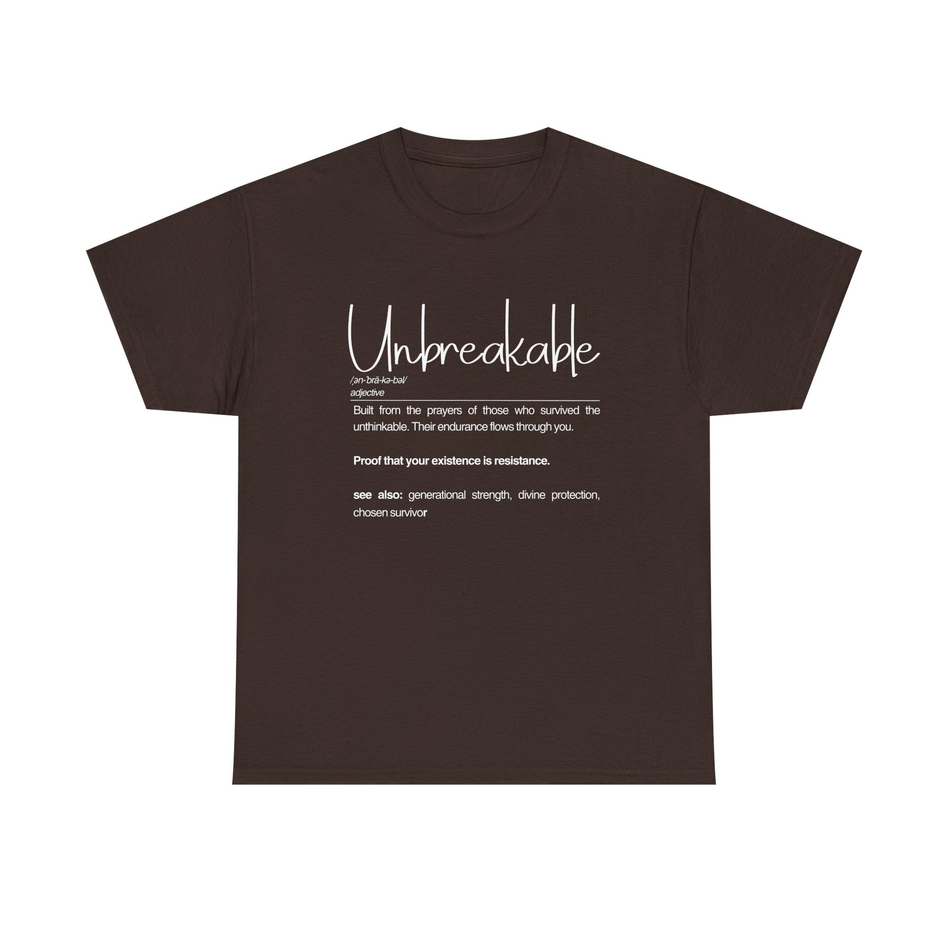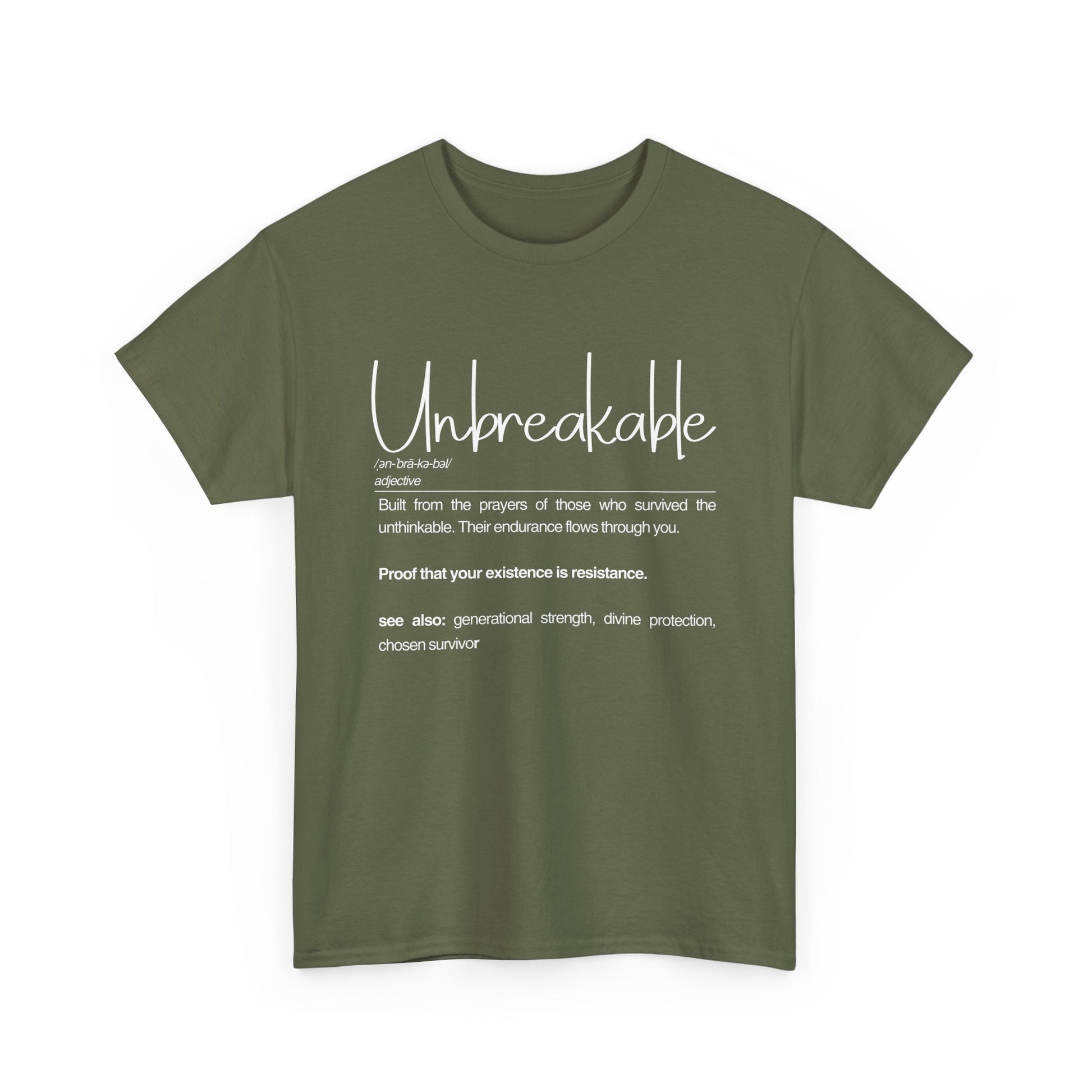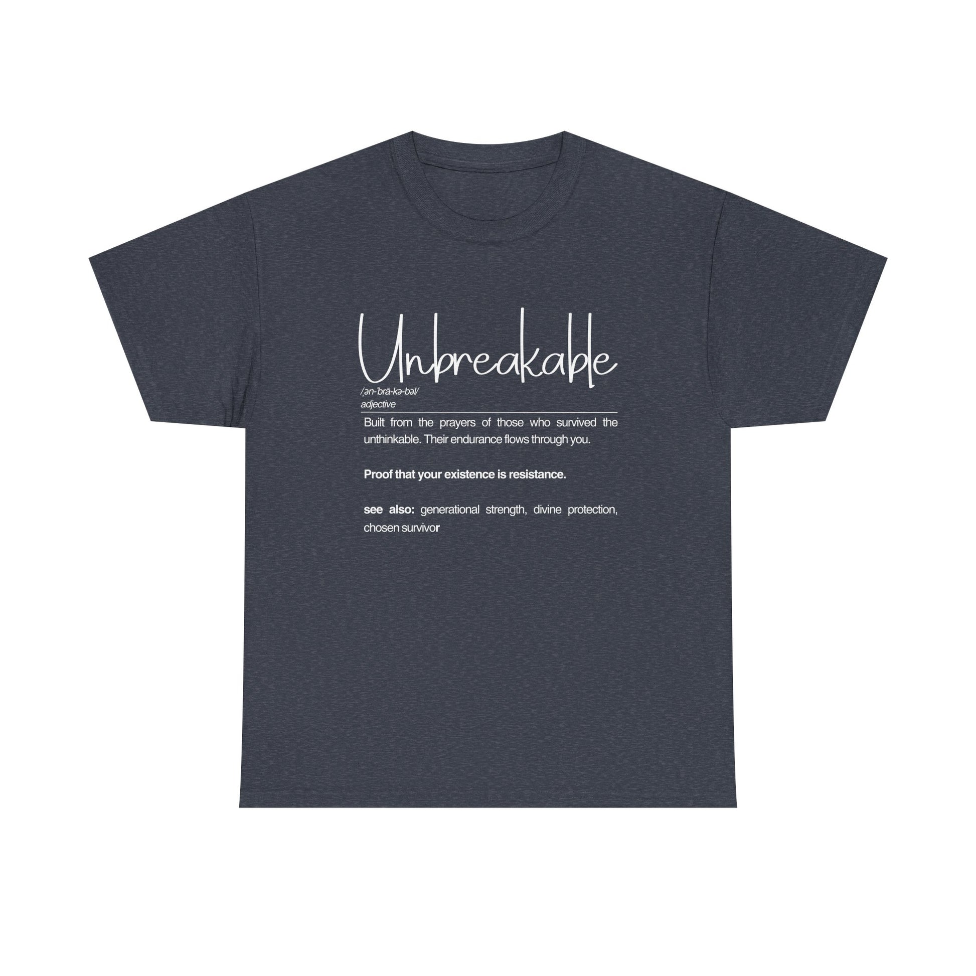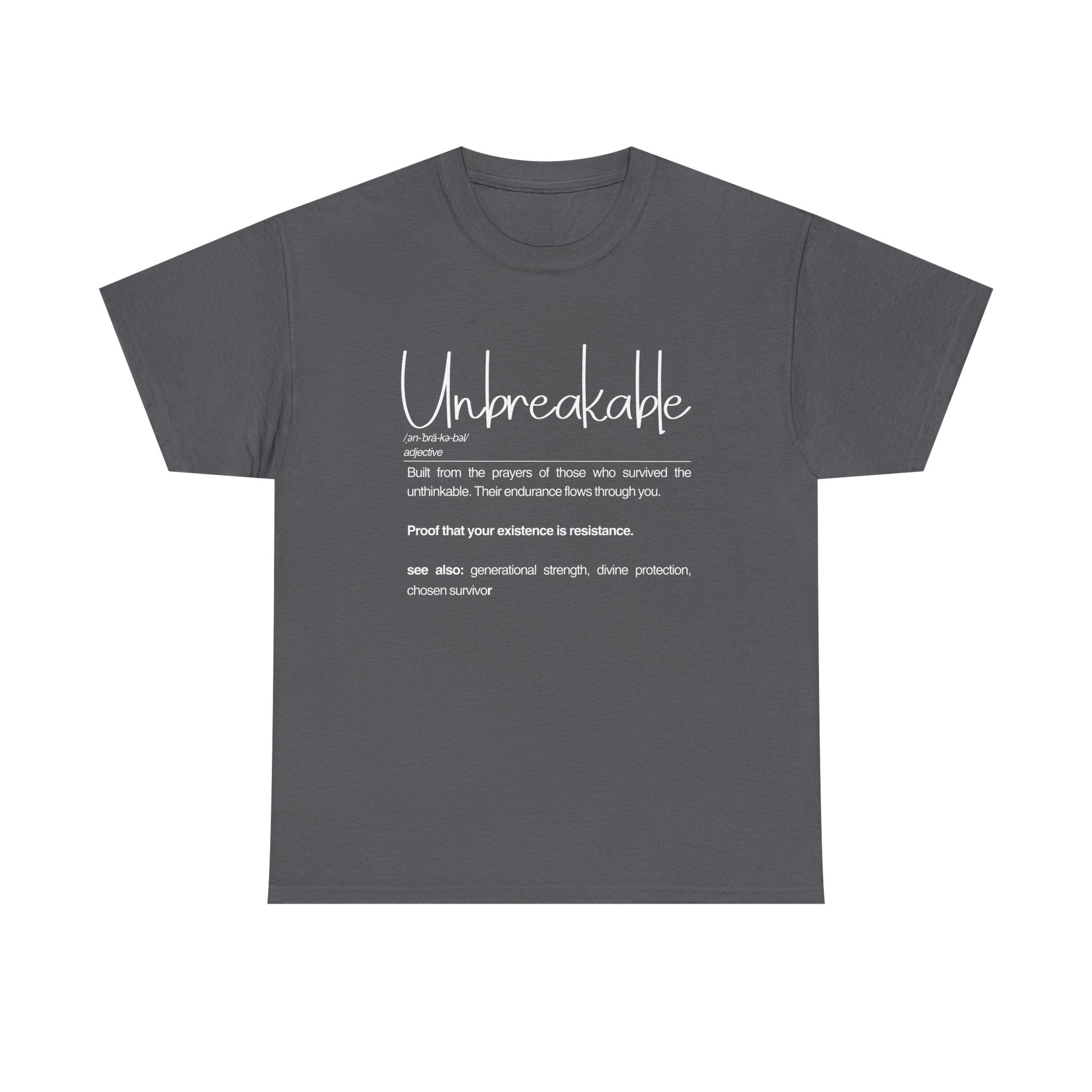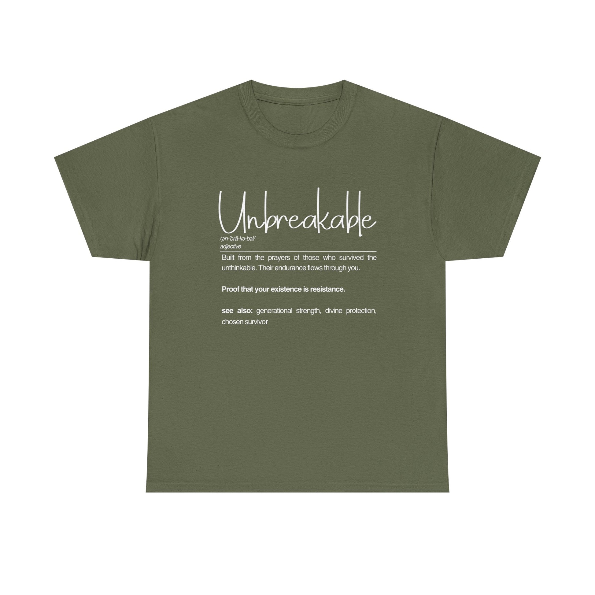 Unbreakable Unisex Heavy Cotton Tee | Motivational Shirt, Gift for Resilience, Inspirational Tee, Everyday Wear, Graphic Tee