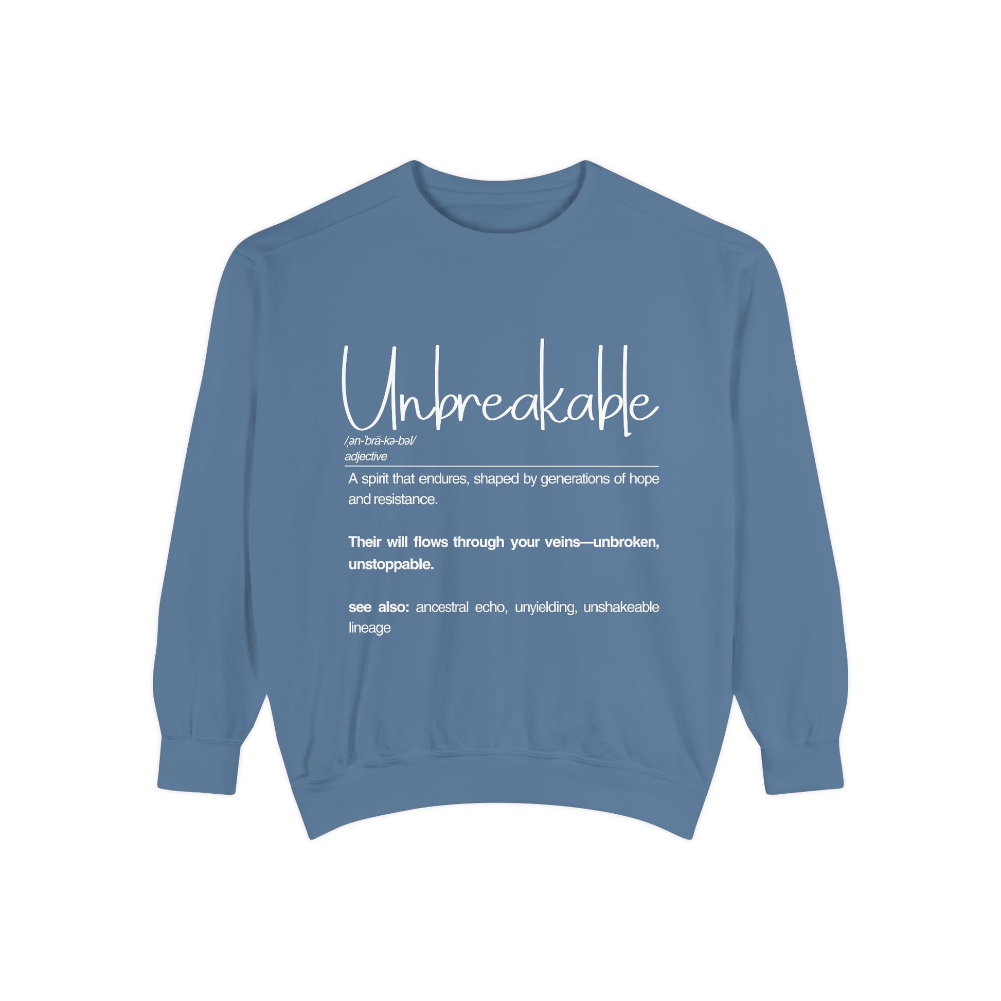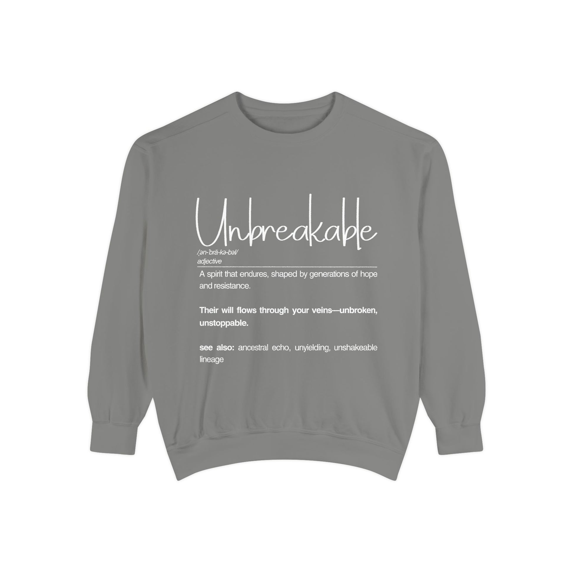 Embrace comfort and style with this unisex garment-dyed sweatshirt. Perfect for cozy evenings or casual outings, it adds a relaxed vibe to any wardrobe. The soft and luxurious fabric feels great against the skin, making it ideal for everyday wear or lounging at home. This sweatshirt is perfect for anyone who loves a classic yet trendy look, whether you're a student, professional, or just someone looking to express themselves. It's a wonderful gift for holidays like Christmas, birthdays, or simply as a treat for yourself. Celebrate resilience and individuality with this unique piece that speaks to your spirit and style.