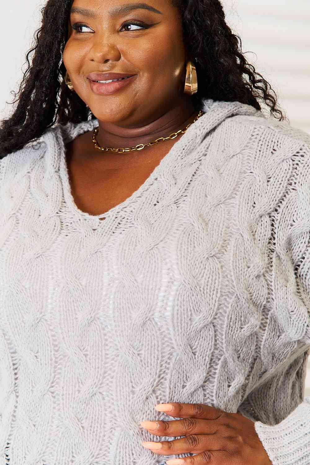 Stay warm and stylish in this cable-knit hooded sweater. The intricate cable-knit pattern adds a classic touch to this cozy sweater, while the hood provides extra warmth and comfort. Perfect for chilly days, this sweater is a must-have addition to your winter wardrobe.