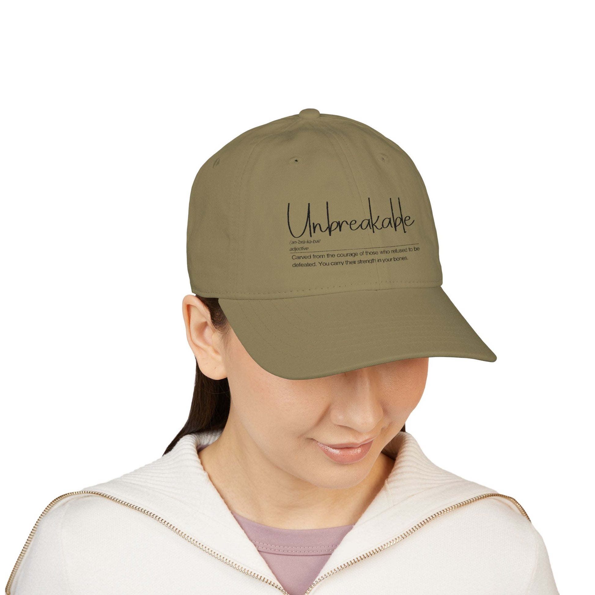 Unbreakable Organic Baseball Cap, Soft Adjustable Hat, Gift for Friends, Casual Everyday Wear, Inspirational Apparel